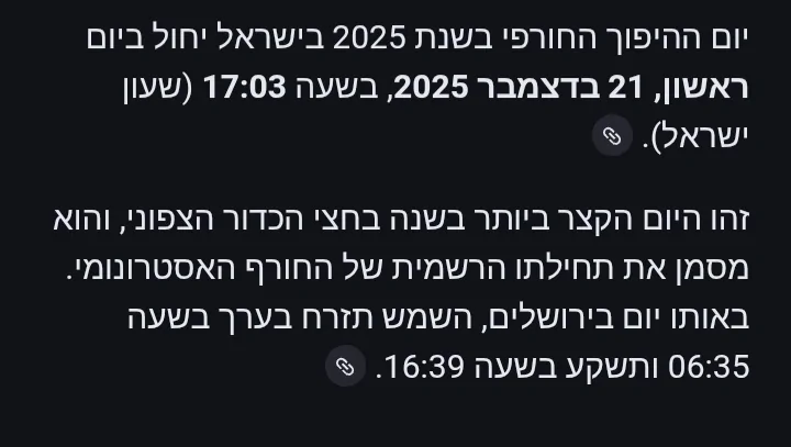 - היום בו השמש בנקודה הדרומית ביותר - 21/12/2025 חנוך א