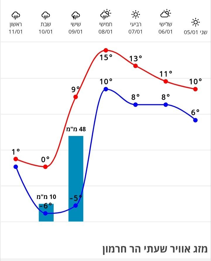27- ב 500מב שיממה לפני כן צפוי רק 12- עם טמפ חמימות יחסית בקרקע.