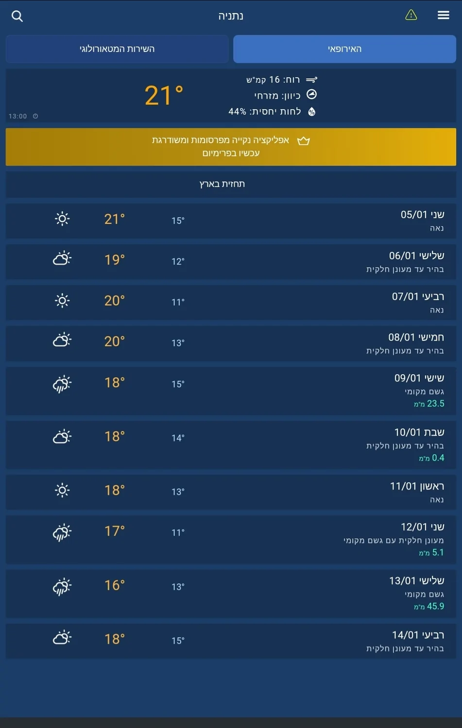 - תחזית של 75 מ”מ ב-10 ימים הבאים בנתניה, זה מאי בעיניך? שלומי