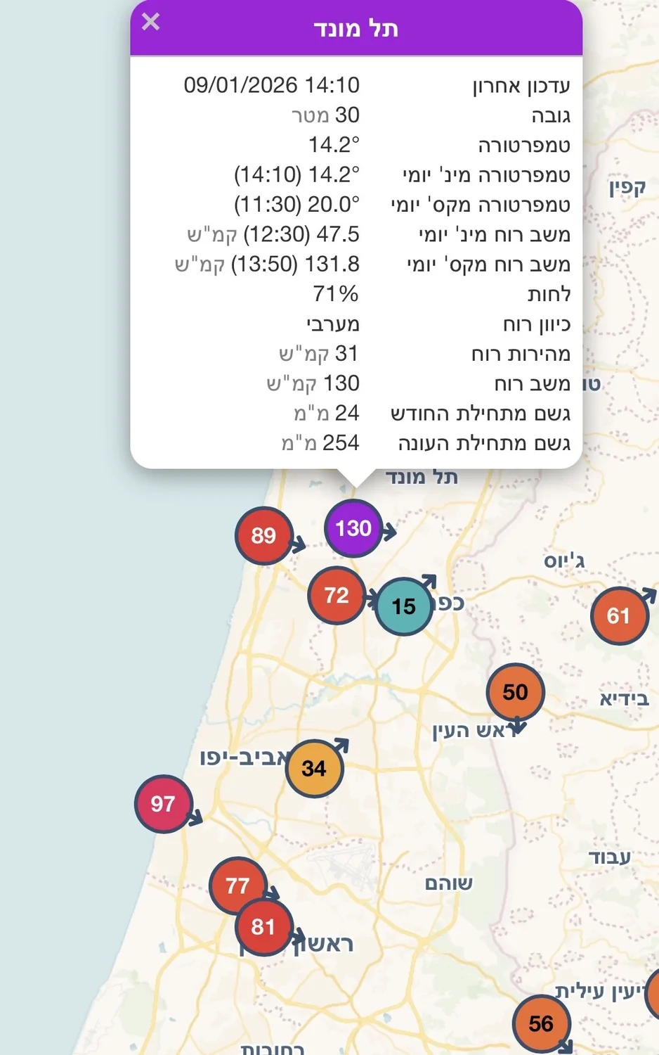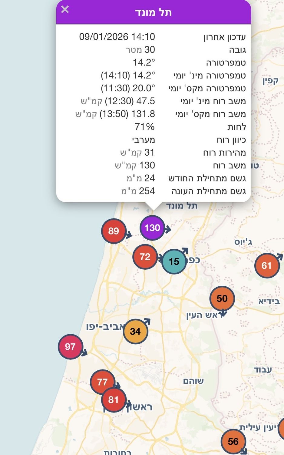 - משב רוח של 130 קמ״ש בתל מונד איתן