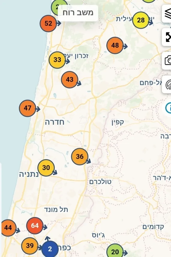 - נמדד משב של כ-60 קמ"ש כעת רוני