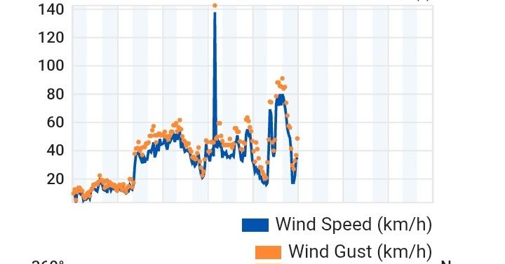 היו לפני שעה רוחות חזקות 32 קשר, עכשיו 27 קשר.