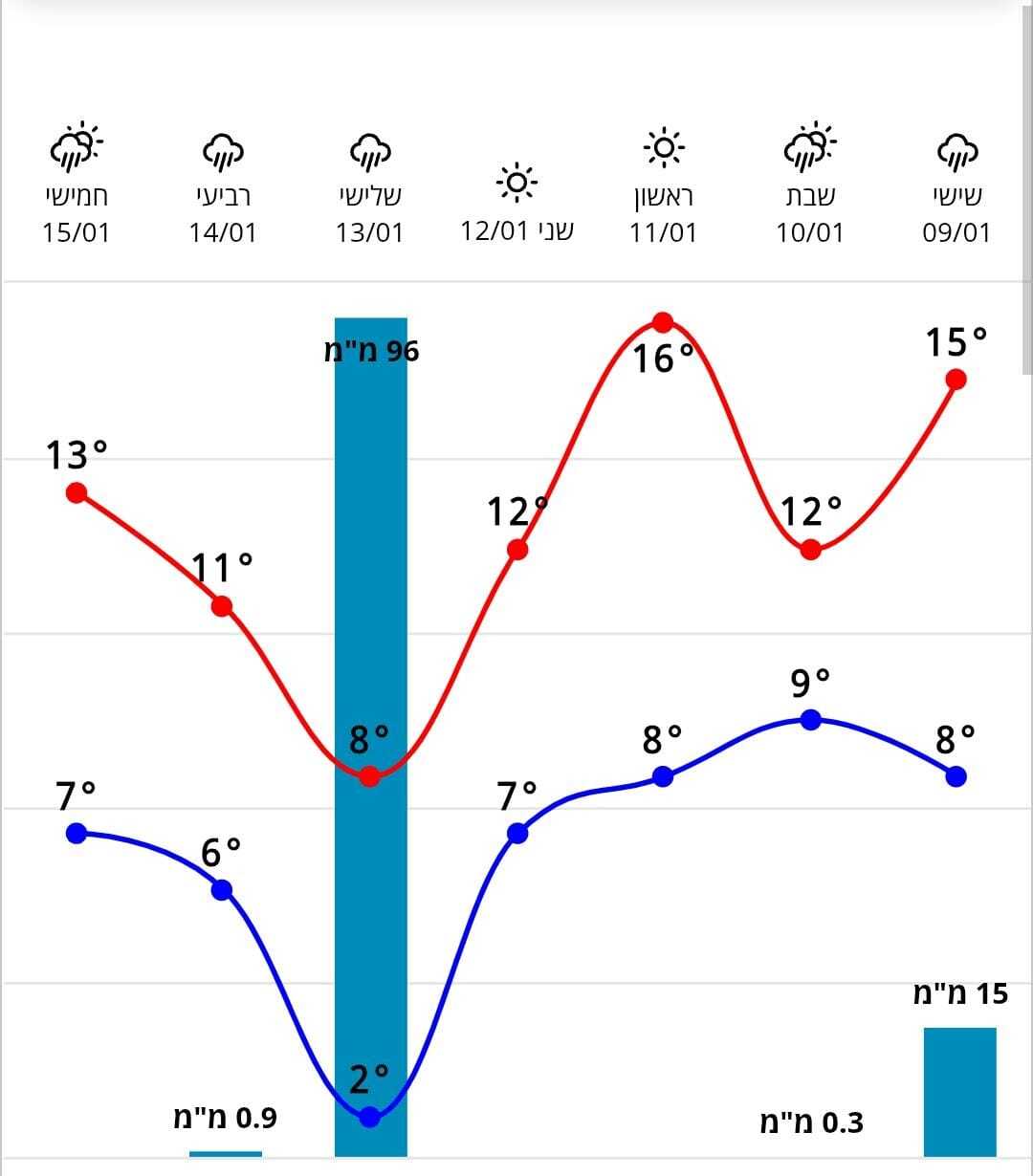 - השמ"ט "משתולל" עם 96 מ"מ בירושלים ביום שלישי הבא וטמפ' מינ' של 2 מעלות בלבד: מתנאל