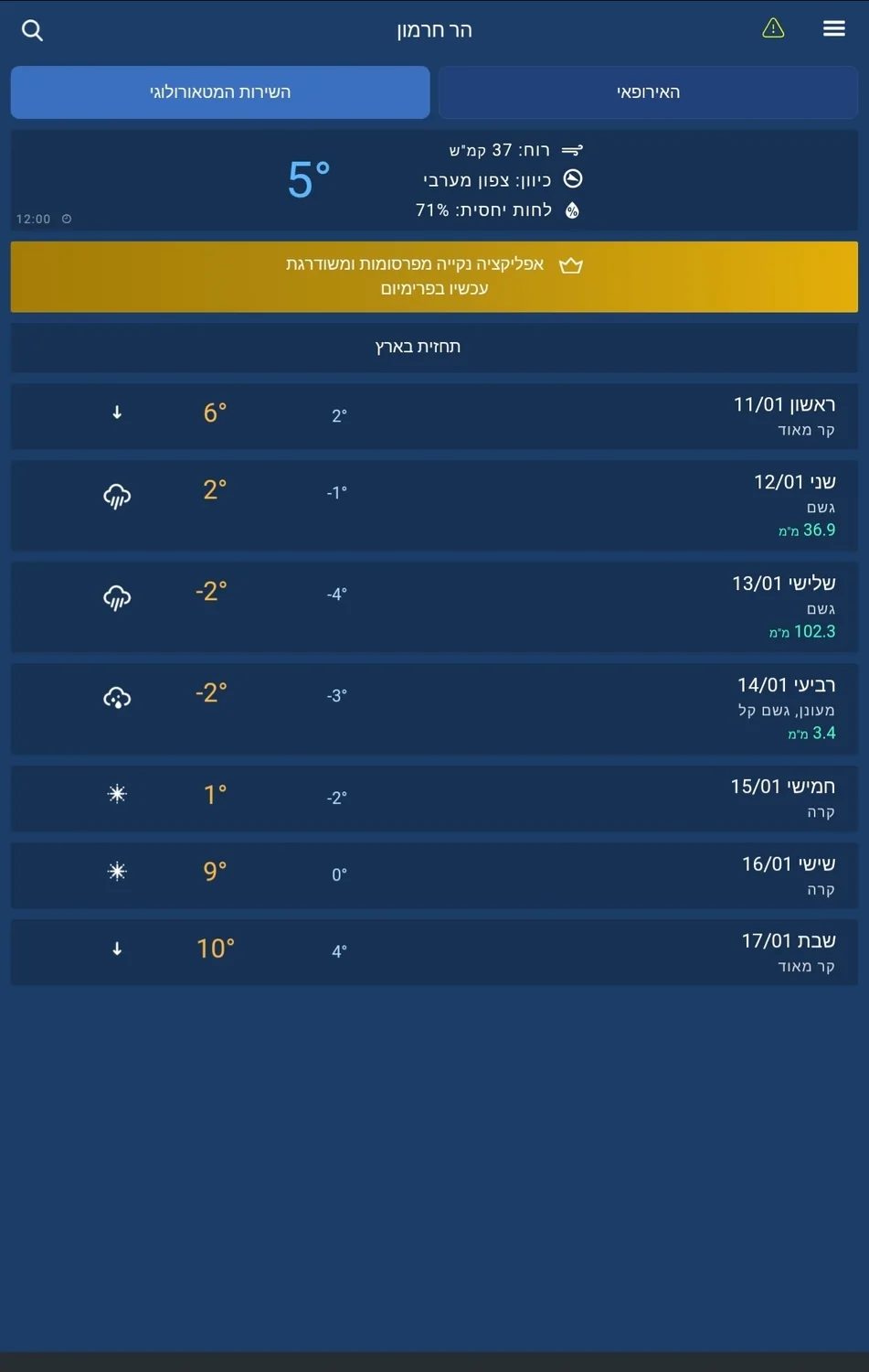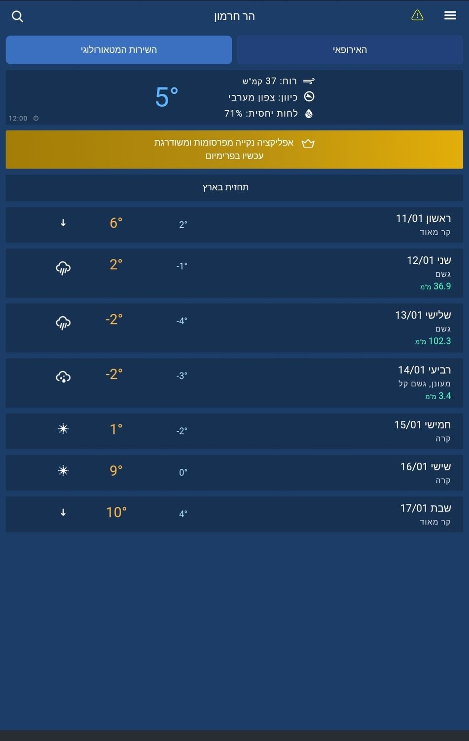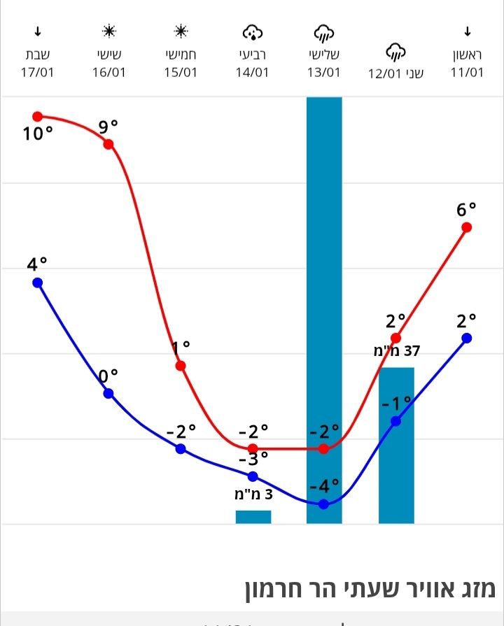 - כמות המשקעים הצפויה בחרמון שברה את הסקאלה חנוך א