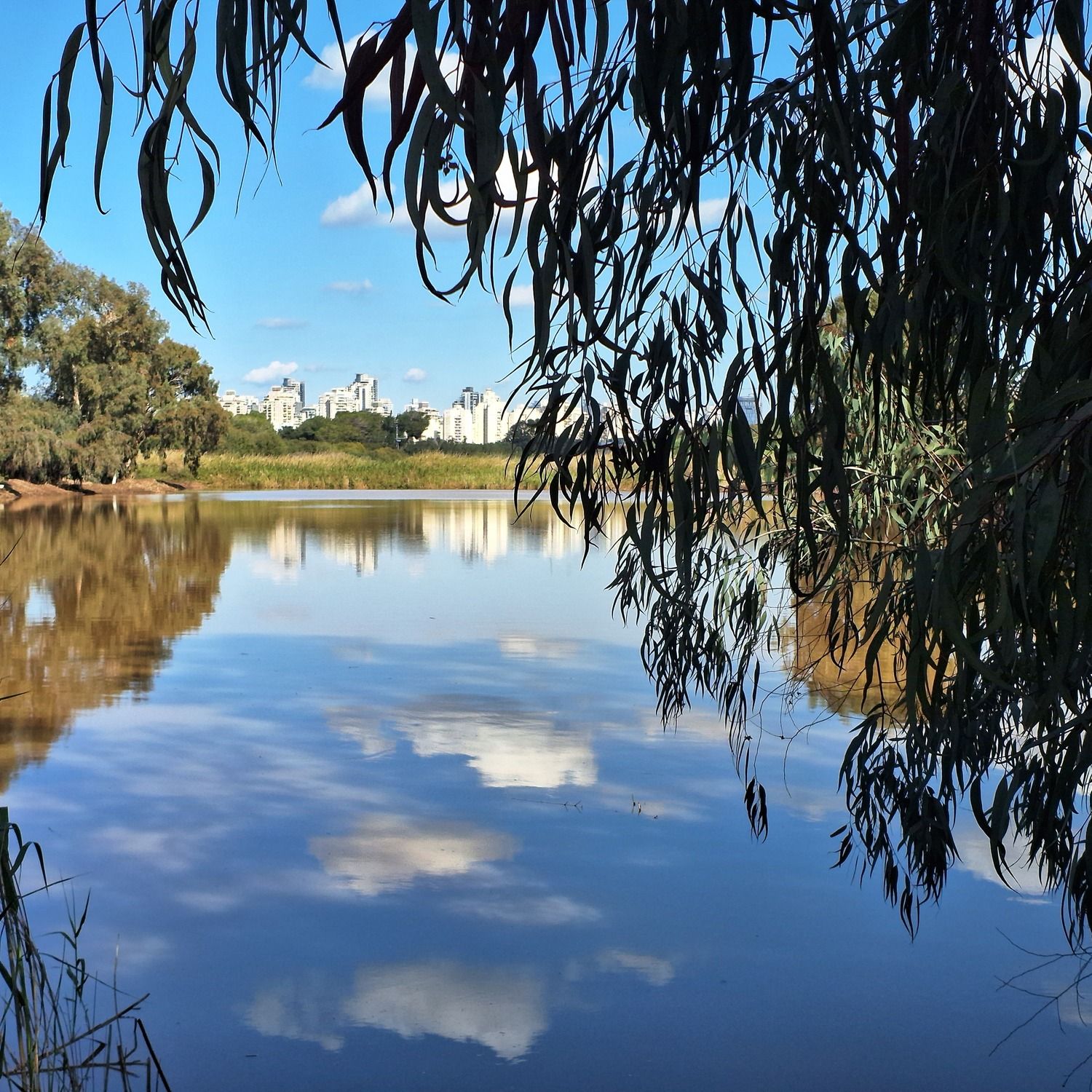 - שישי בבוקר יום יפה. השתקפות באגם יקום יובל