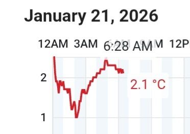 בלילה המינימום הגיע עד 6 מעלות, לילה קר בהחלט ואף הפעלתי את החימום בכל העוצמה אצלי בחדר (כמו בלילה הקודם).