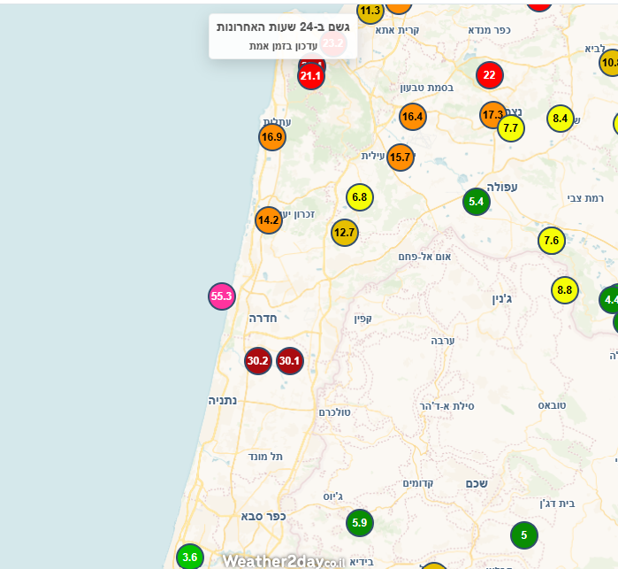 - חדרה עם 21.7 מ"מ תוך שעה. מתנאל