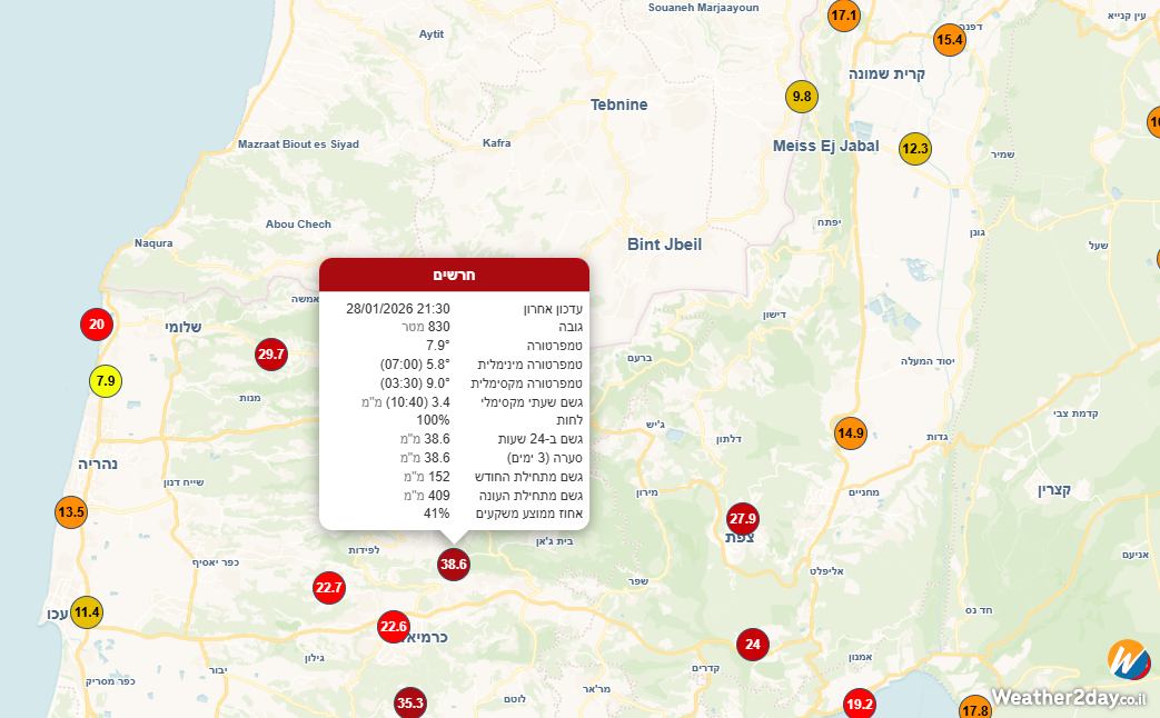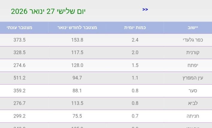 - בנימינה: 27.2 מ״מ (29.01) אריק