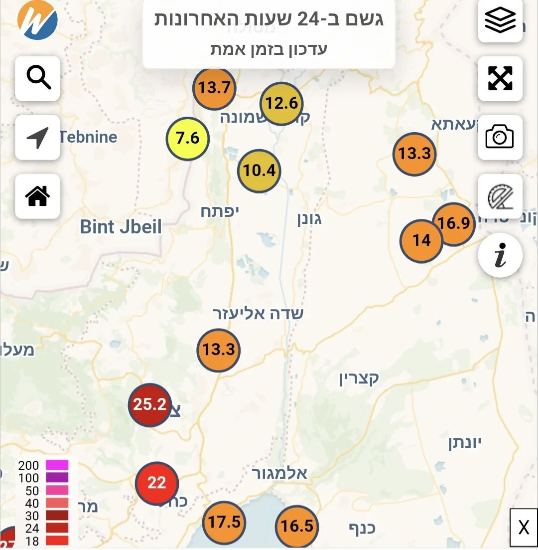 לפני מספר ימים, וראיתי שבאמת צדקת וזה הנתונים של כל התחנות באזור. אבל ראיתי שחלקן אף נמצאות באזור ה-80% ממוצע, שזה דומה לשנה שעברה, אתם באים להגיד לי שעם כל הגשמים החזקים, ותיעודים על מים בגובה מטורף, אנחנו בסך הכל באותו מצב, רק 4-8% יותר משנה שעברה? הזוי!!!