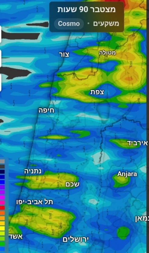- צפויות שתי פעימות של גשם- בשלישי ובשבת, עם עדיפות מובהקת לצפון דוד, קדומים