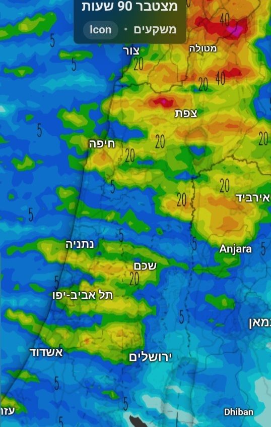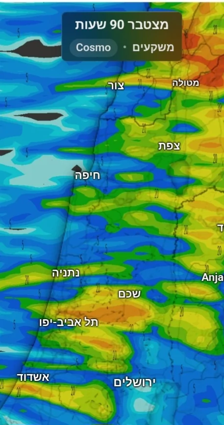 התקררות קלה במודלים הבוקר והתחזקות במערכת גשם מחר עם 40 מ"מ