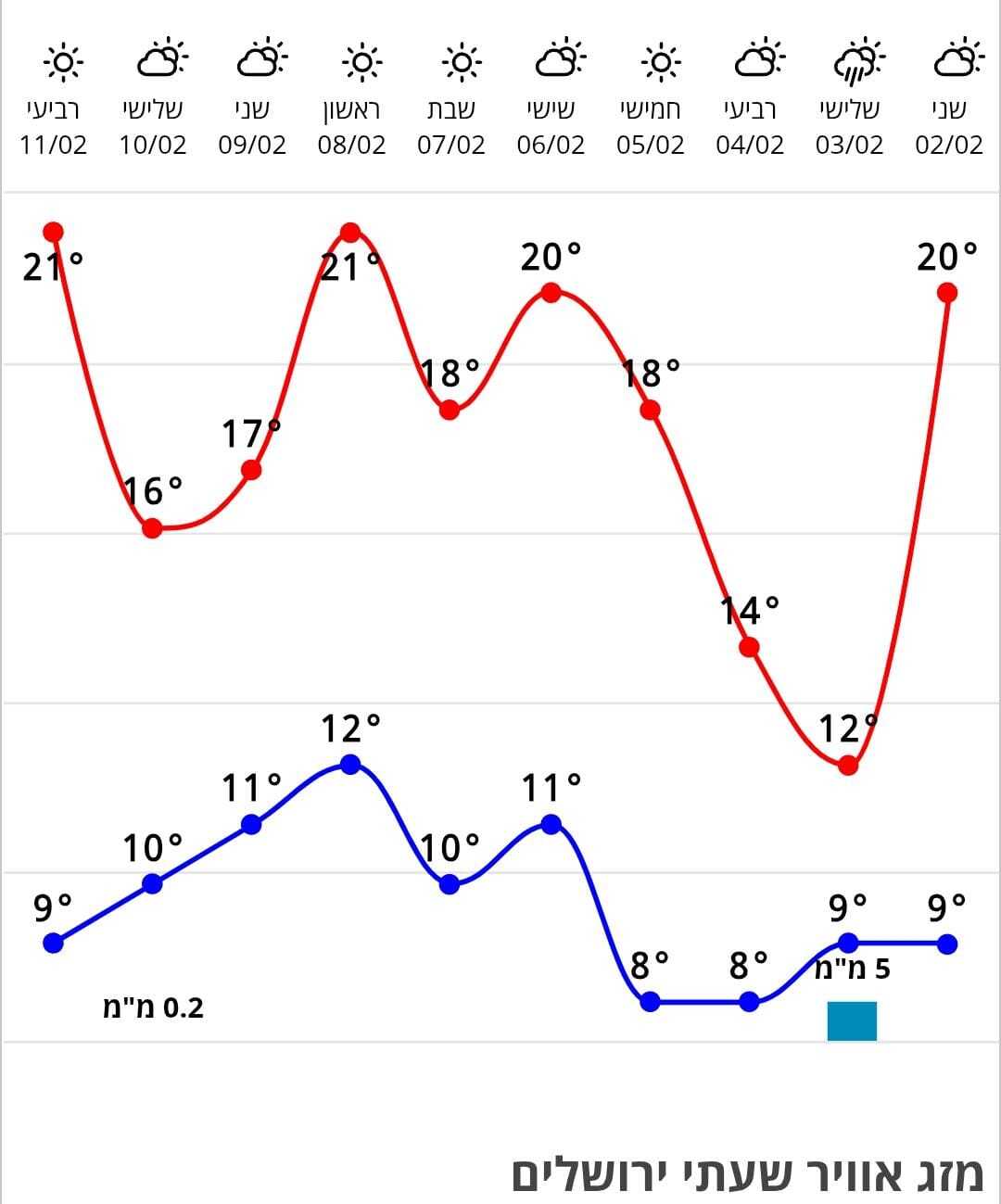 - כ-16 מעלות בירושלים. התקררות דווקא מהבוקר לצהריים. מתנאל