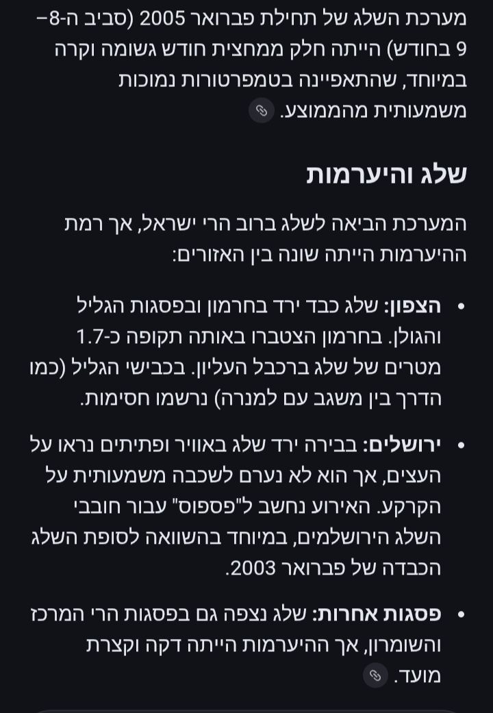 - ב2005 היה צפי למערכת מאוד סוערת ולשלג בבירה BB