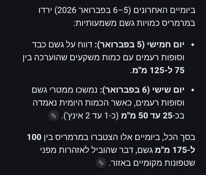 - דיווחי מזג אוויר - יום שישי 06/02/2026 מתנאל