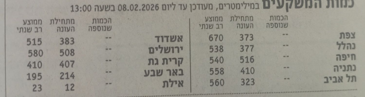 שמתי לב שהם תמיד מעלים כלפי מעלה תמיד את י-ם ותמיד מוריד את ת"א, למשל, אפילו בסוף דצמבר, הם התעקשו על פער של 80. מ"מ לטובת י-ם.