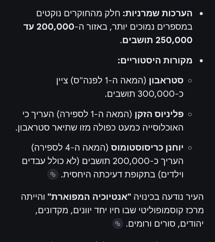 למיטב ידיעתי באותה תקופה גם ערים גדולות במושגי התקופה לא החזיקו יותר מכמה עשרות אלפי תושבים אולי מאה מאתיים אלף גג.