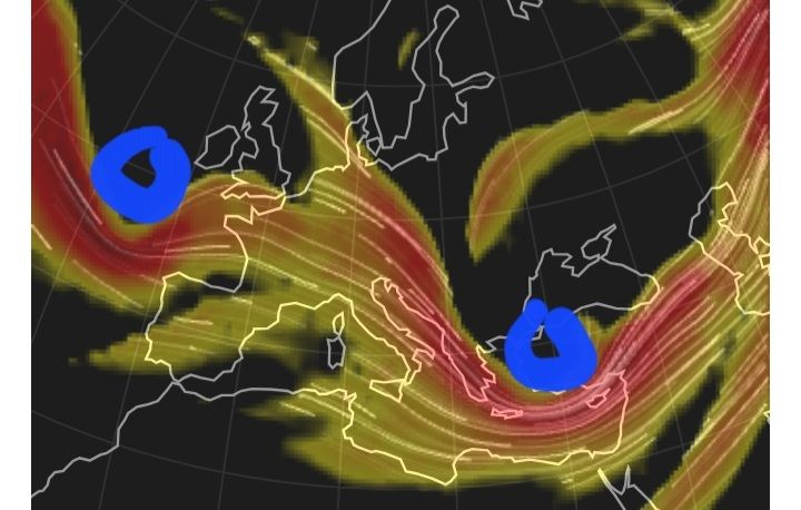 - נקודות מינימום בזרם הסילון = שקע = גשם חנוך א