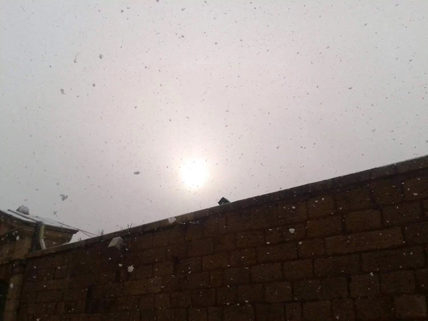 תמונה שצילמתי ב-2013 בהר ציון בירושלים, פתיתי שלג מוארים מהשמש (הנראית במרכז התמונה) שמאירה מבעד לעננים: