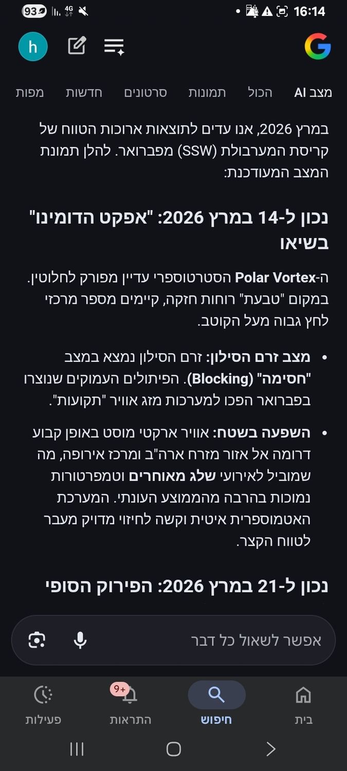 - הוורטקס הקוטבי וזרם הסילון. מחר ובעוד שבוע חנוך א