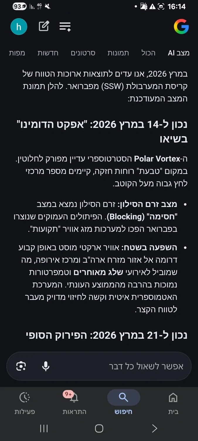 הוורטקס הקוטבי וזרם הסילון. מחר ובעוד שבוע