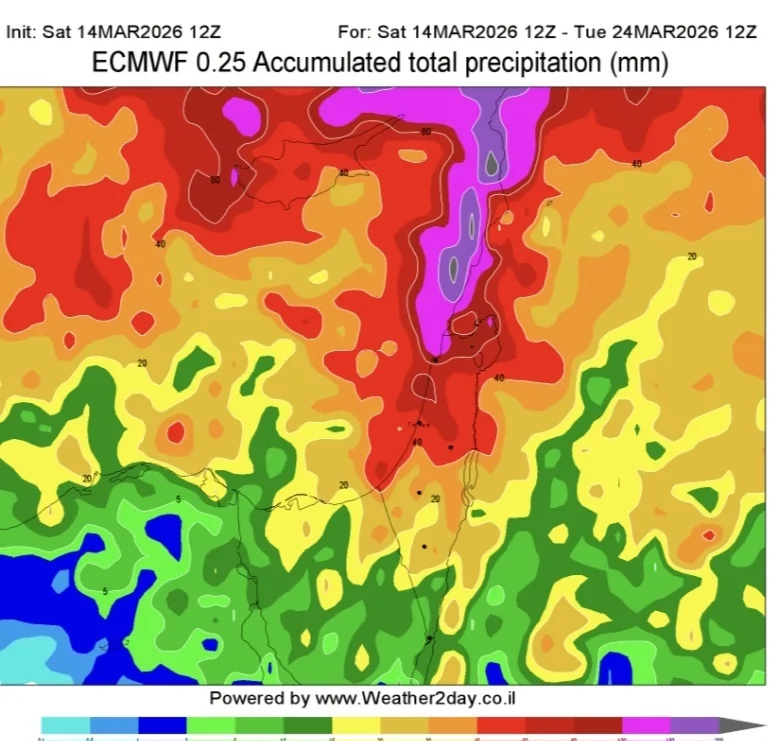 מהלילה נכנס לסקטור הקר של המערכת ואני מאמין שהכמויות יגדלו אבל שוב בעיקר בצפון.