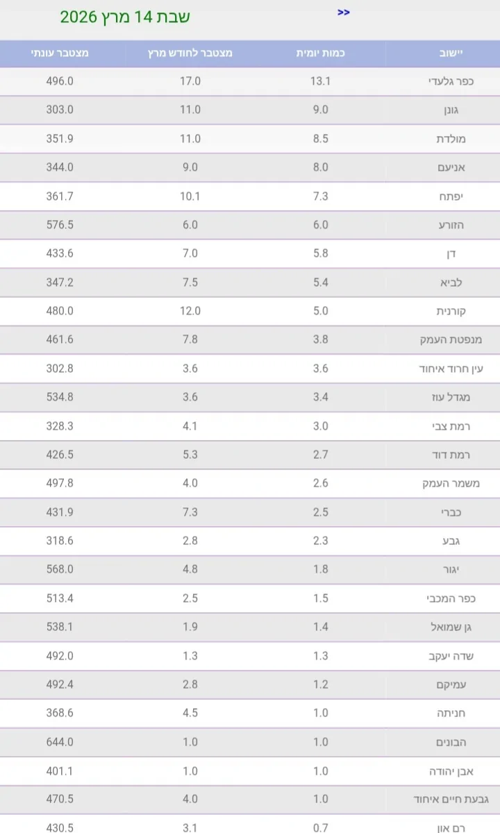 וכולם מטח כבד מטורף מרץ ניראה כבר נמוך מאןדפה בעיקר ושרון דרומי ומחדרה צפונה טוב