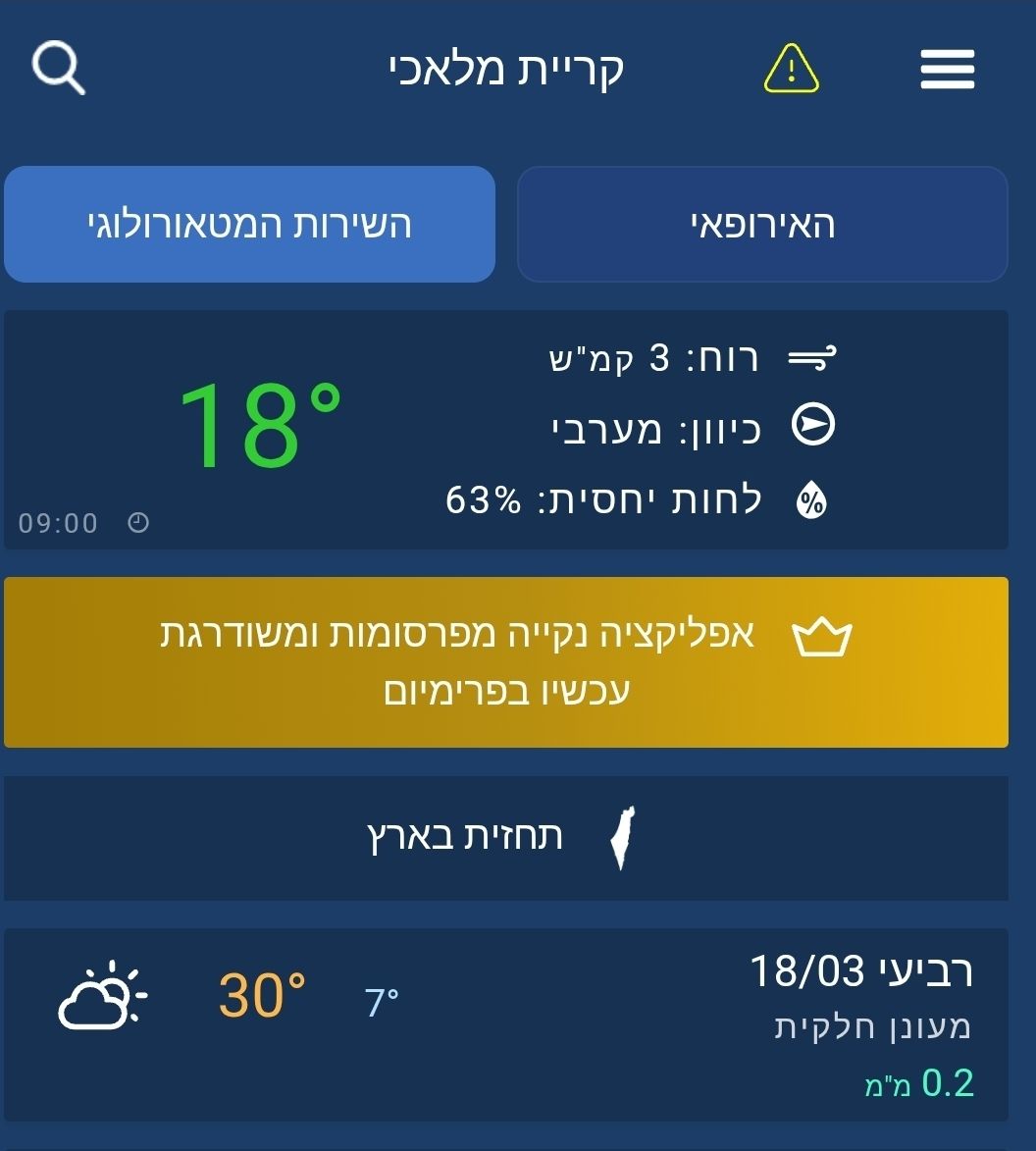 - דיווחי מזג אוויר - יום רביעי 18/03/2026 מתנאל