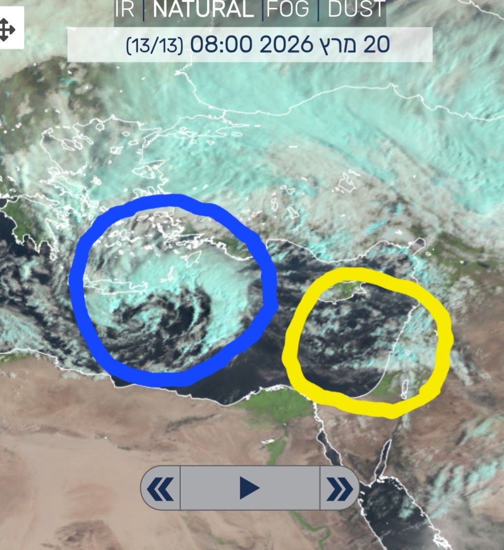 - תמונת לווין. מימין הגל הנוכחי, משמאל הגל שיתחיל הלילה וימשיך מחר דוד, קדומים