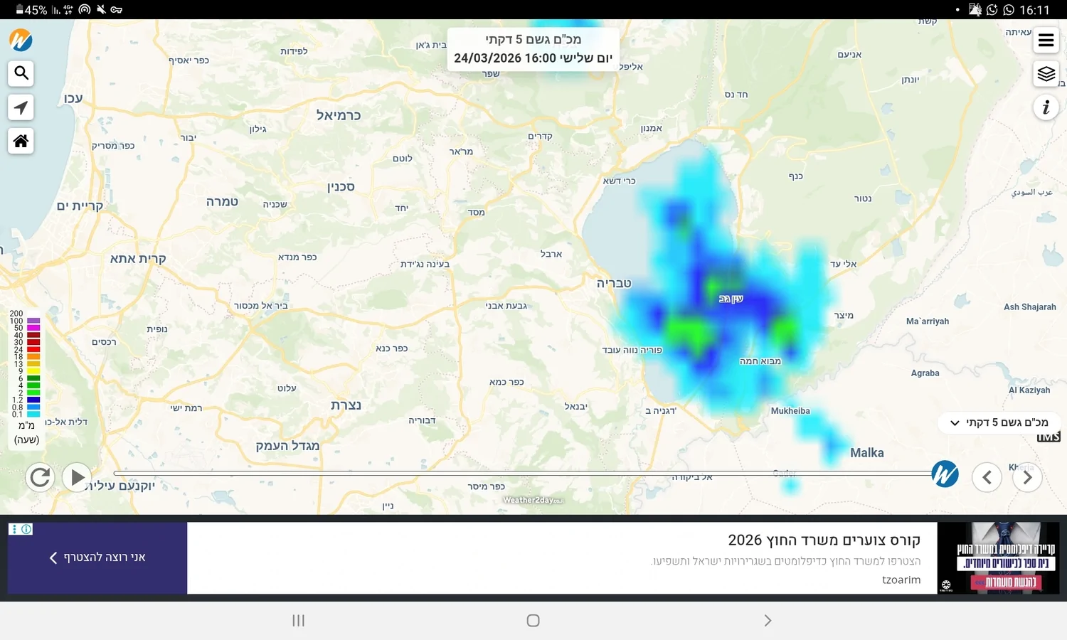 - הצפי לאזור ב-24 השעות הקרובות חנוך א