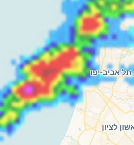 - תל אביב צפון ישן גשם בינוני מלווה ברקים ורעמים פז