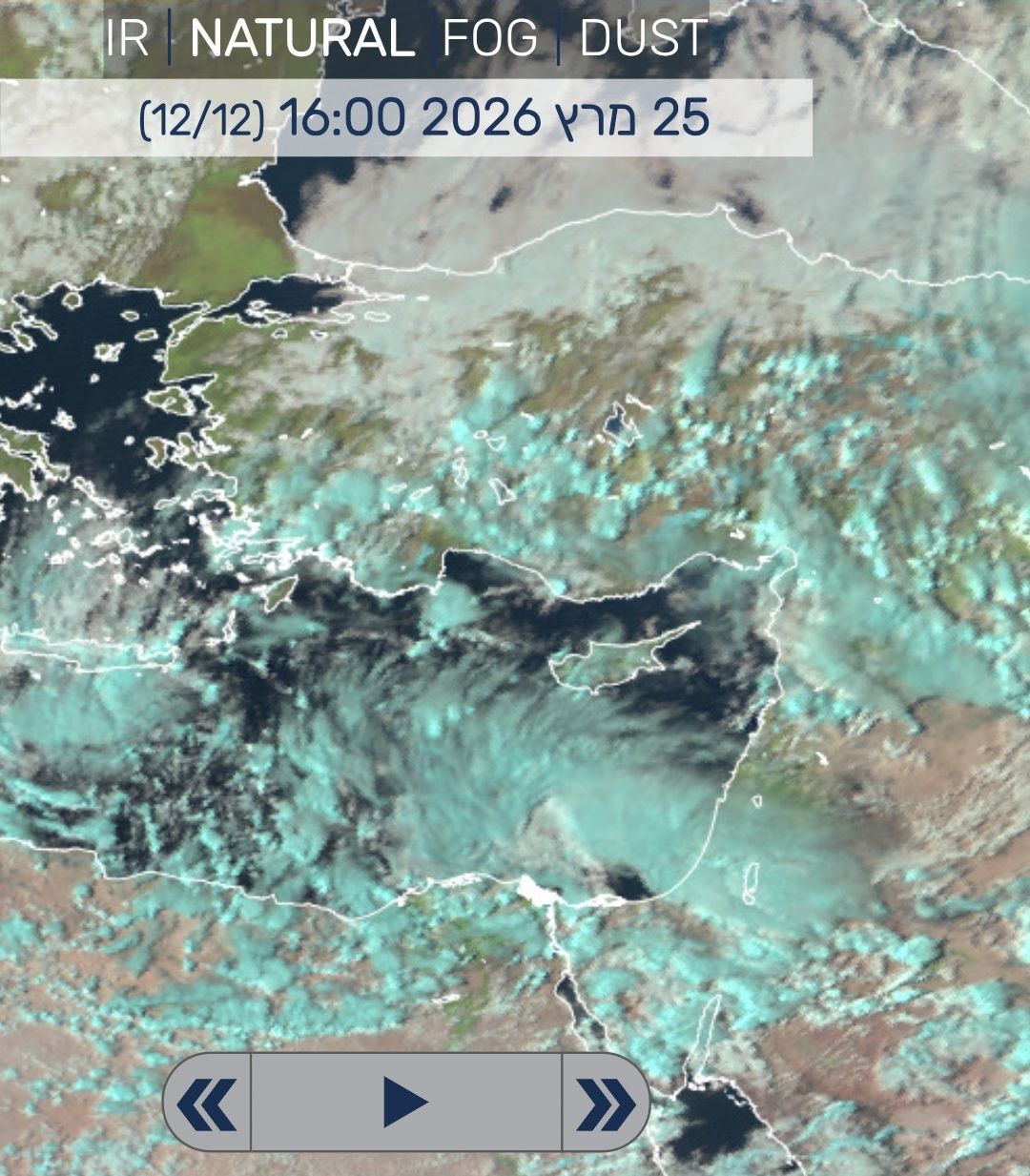 בלווין ניכר שהגשם מתקרב לישראל מדרום