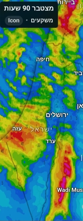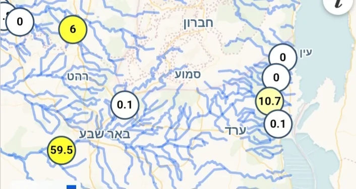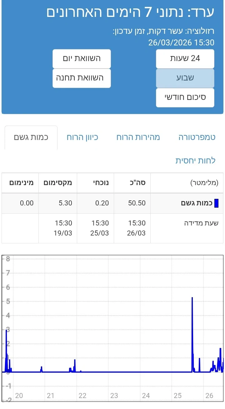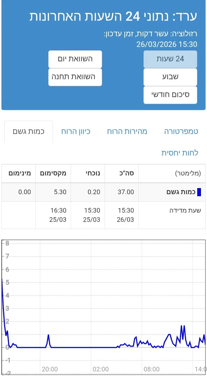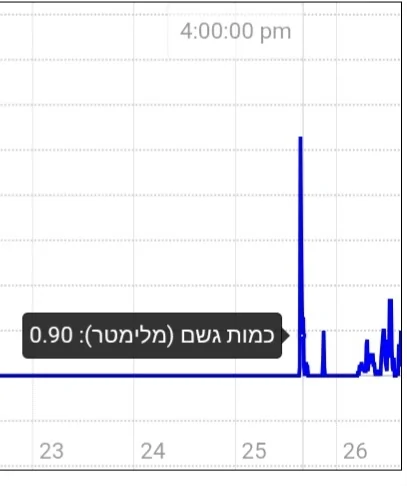 חטפה 37 ממ ב-24 שעות שזה מעל רבע כמות שנתית, ו-50 ממ בשבוע