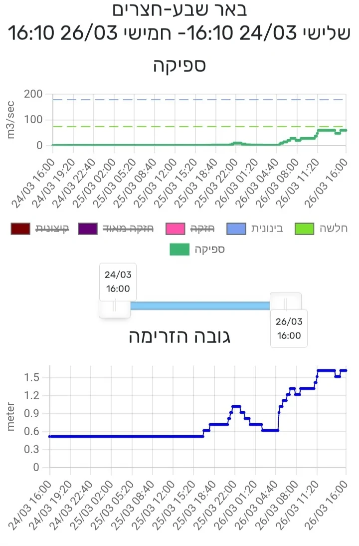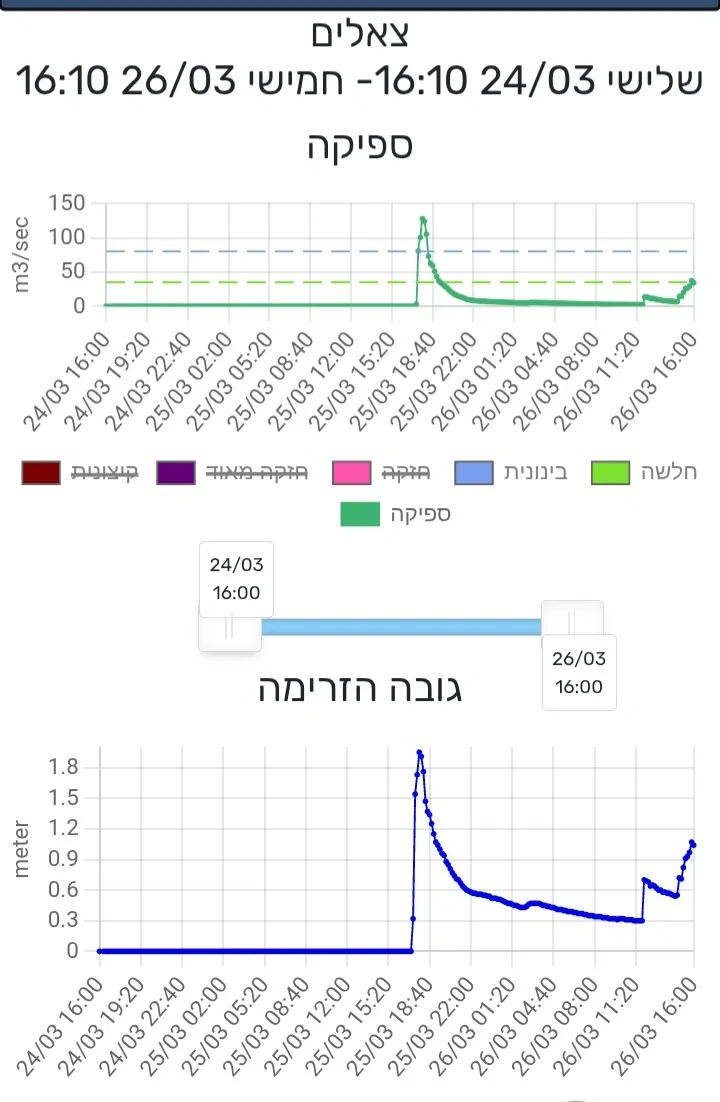 ובמסלול הנחל לפחות 25 קמ דהיינו השיטפון התקדם בערך ב-15 קמ"ש