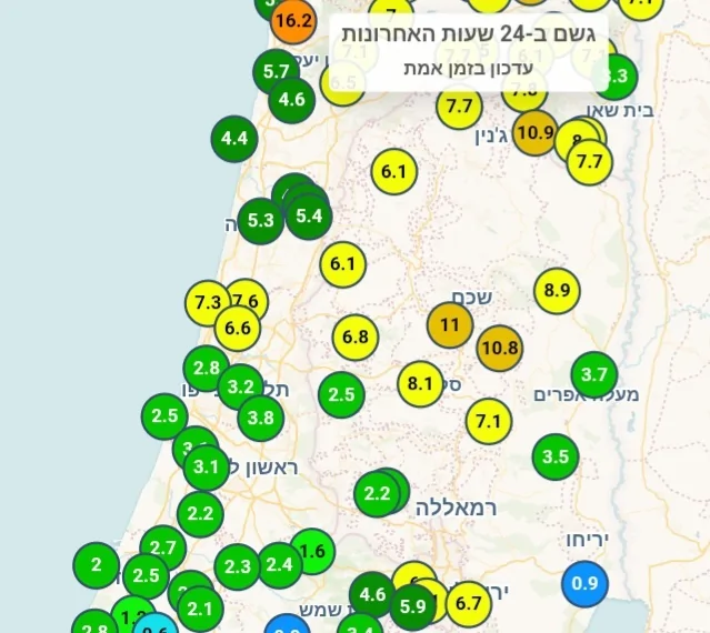 - גשם קל רציף בהרצליה מעל שעתיים. 2.8 מ"מ יובל