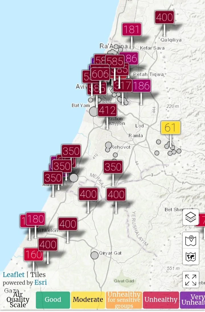 נותנת זיהום ביחידות AQI הרבה יותר נמוך ממדידת התחנות