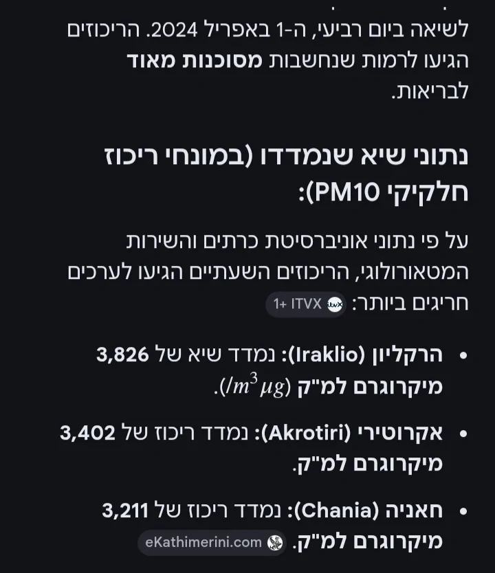 - מה הייתה רמת הזיהום בכרתים כשהשמיים היו כתומים חנוך א