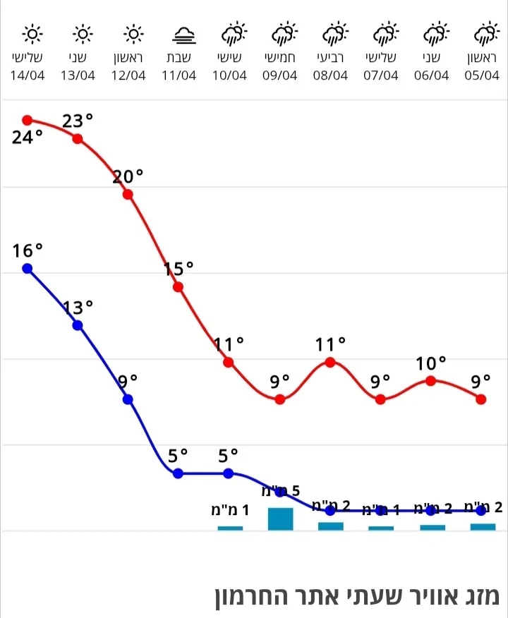 - כל השבוע הקרוב עם טמפ' נמוכות מהממוצע לאפריל מתנאל