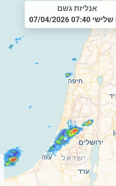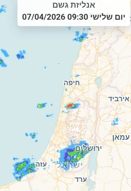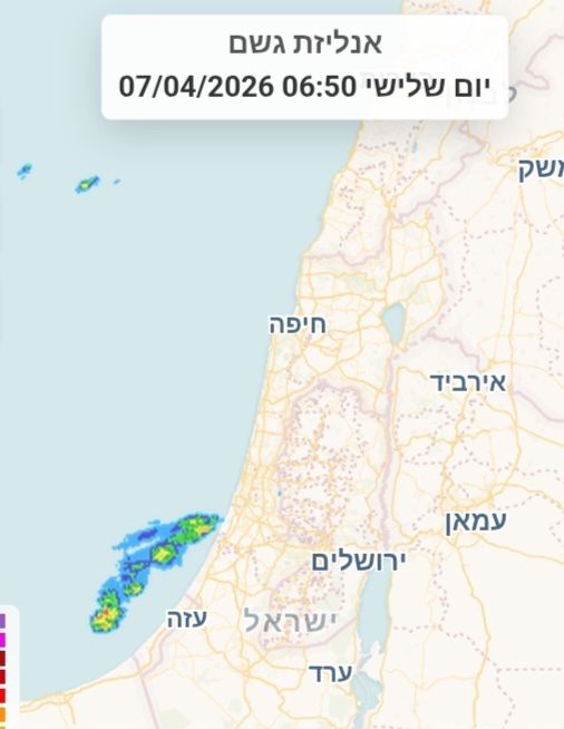 - קו חזית מפותחת עם סופת רעמים וגשם באשדוד. שמשון