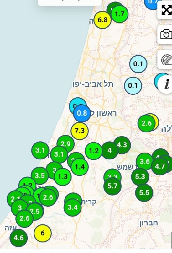 - באשדוד 3.1 מ"מ ברחובות 7.3 מ"מ. שמשון