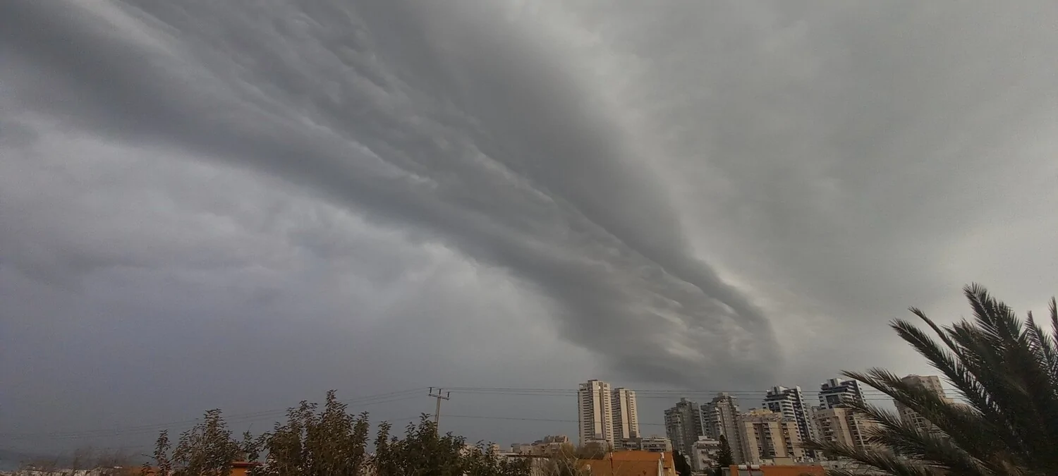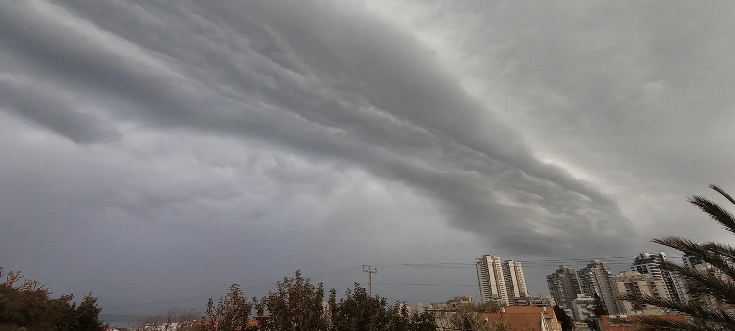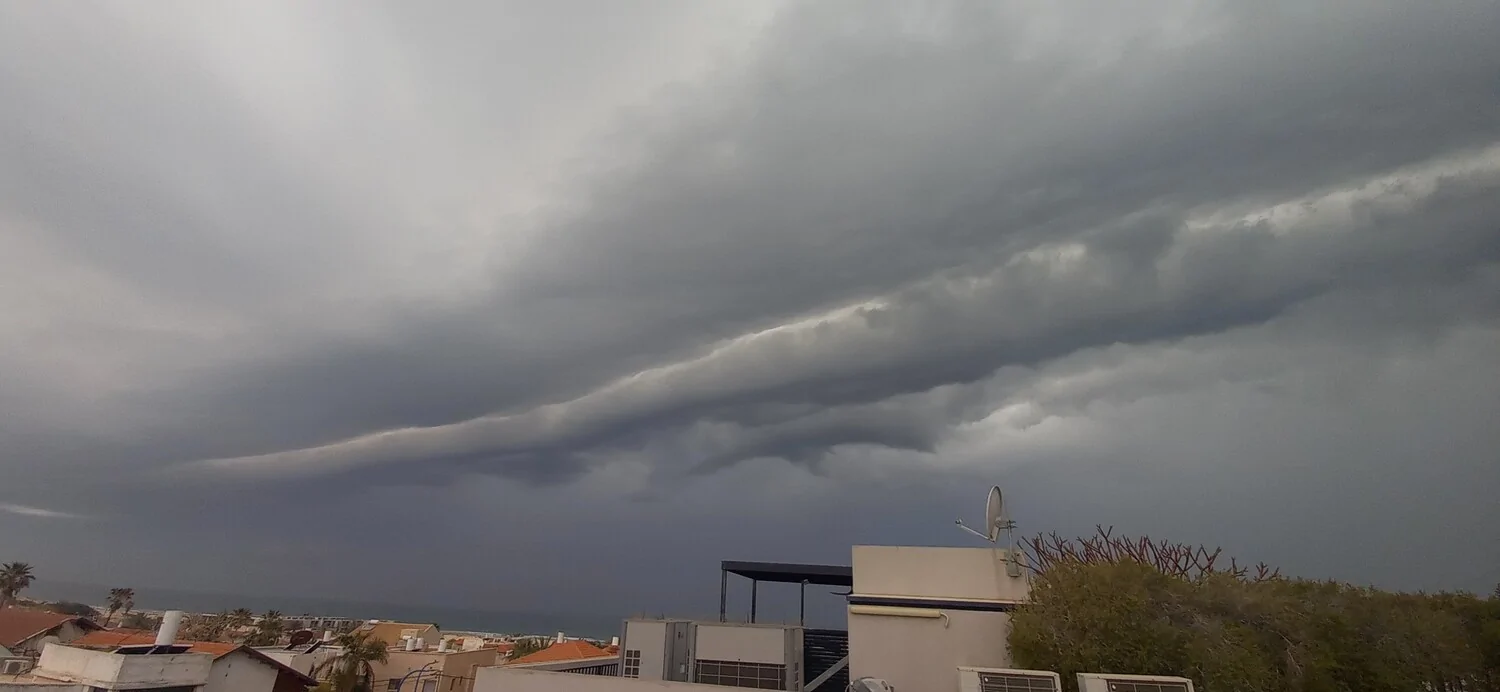 קו חזית מפותחת עם סופת רעמים וגשם באשדוד.
