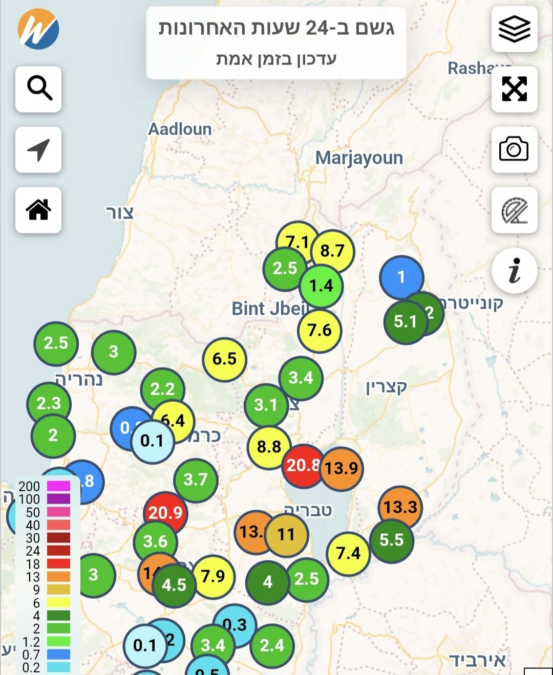- 13.4 מ"מ בשעה האחרונה בהרצליה צפון יובל