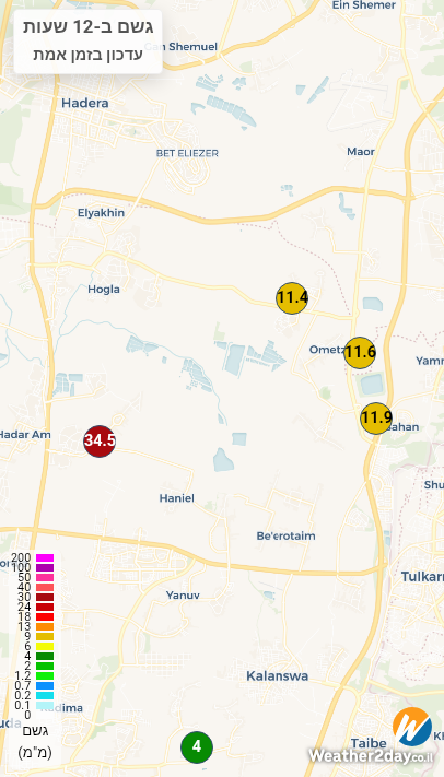 כמויות גשם מטורפות אחרי 3 שעות של גשם וסופות ברקים בעמק חפר