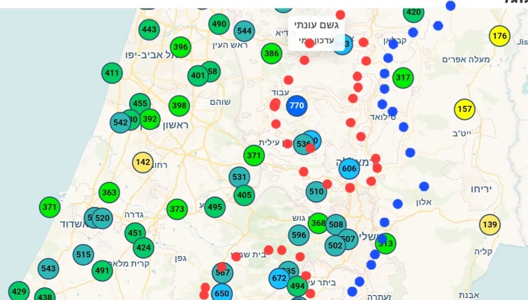 - 13.4 מ"מ בשעה האחרונה בהרצליה צפון יובל