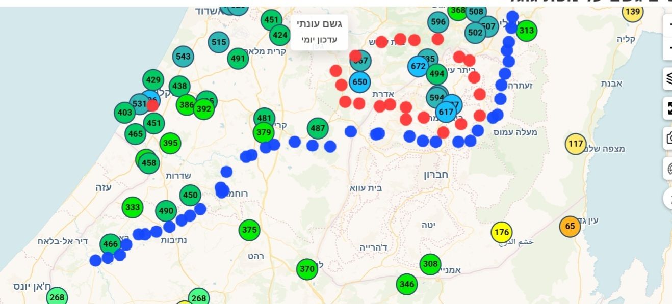 לפי השמ"ט עד סוף חודש מרץ היו בעכו 650 מ"מ ומאז וודאי נוספו עוד לפחות 20 מ"מ. בעין המפרץ ובכפר מסריק כבר מעל ל- 700... למעשה, בועית ה-700 מ"מ שנוצרה נמשכת כרגע דרומה עד רפאל (בקריות כ-675 מ"מ עד כה בעונה זו).