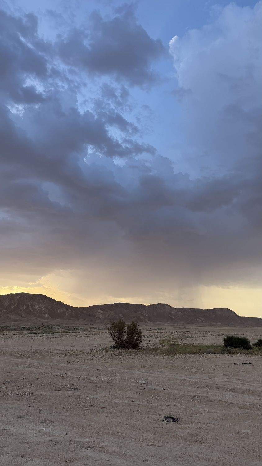 - השילוב של הנוף המדברי, השמיים השחורים ווילונות הגשם הוא מדהים שי