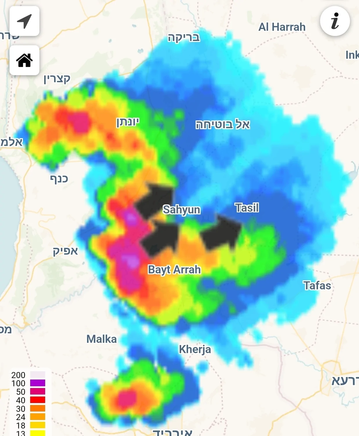 לפי אייקון הדגש הוא על מרכז הנגב ודרום הרי יהודה ומזרח להם. כמו כן מוקד בצפון באיזורי הפנים. לפי הכמויות במפות יש בהחלט חשש לשיטפונות בדרום/מזרח.