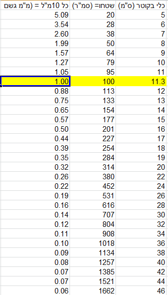 - אופס, כל "10" מ"ל =1 מ"מ גשם, קבלו טבלה מכל הגדלים חובב