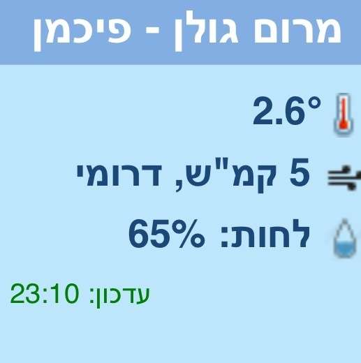 - 18 מעלות תחושה של 10 מעלות דוד(דרום)