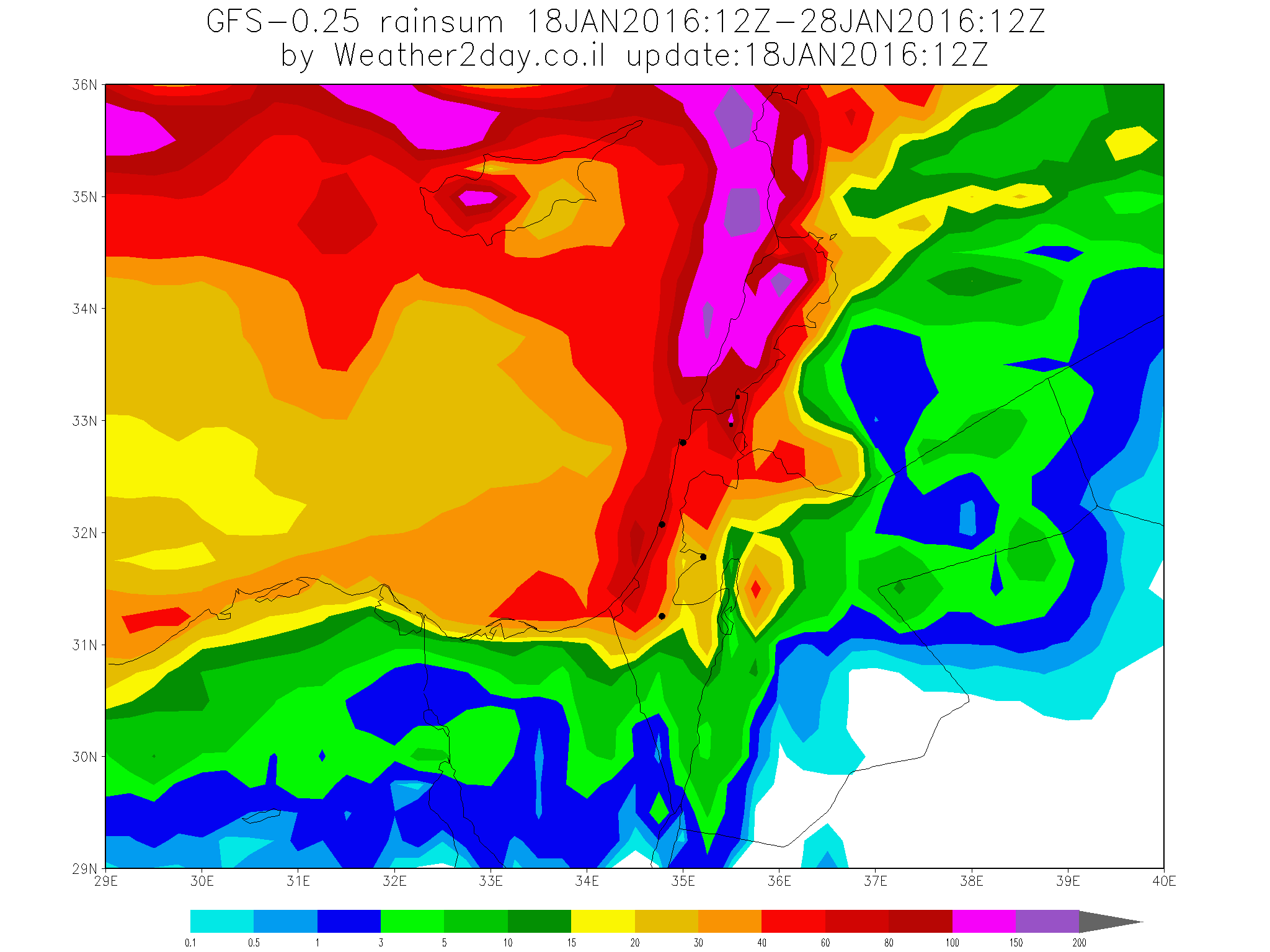 - צפי משקעים ל-10 ימים הקרובים Weather2day