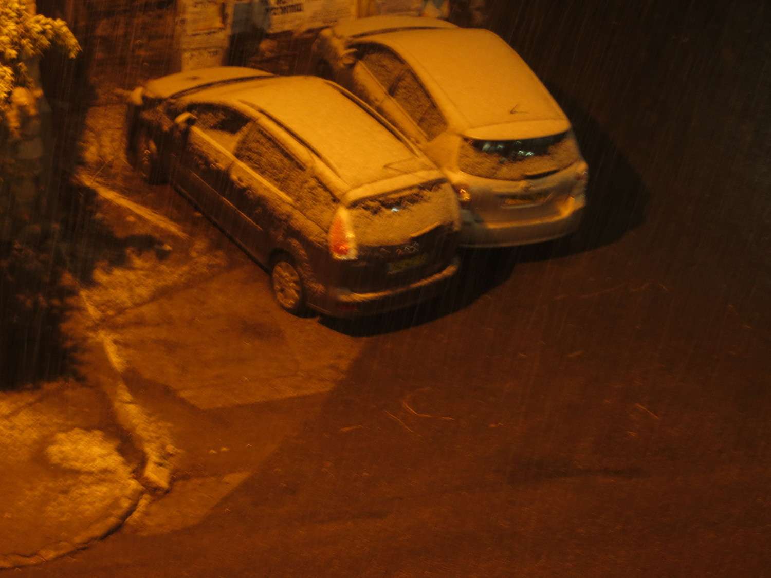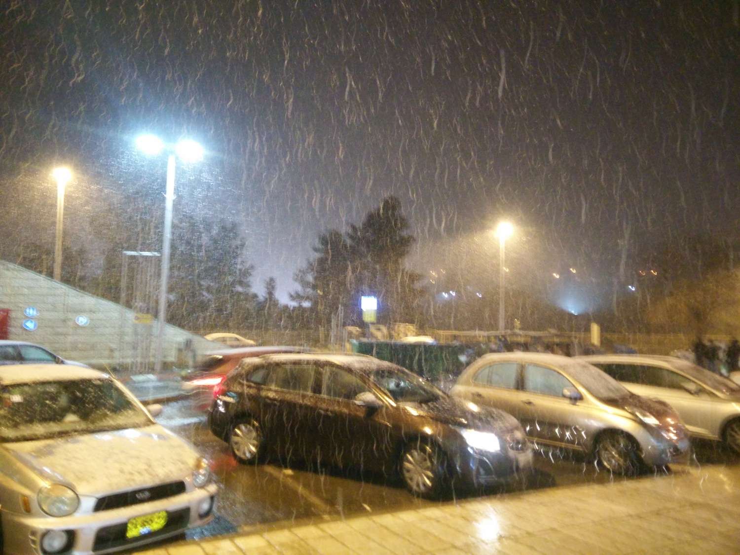 שכונת רמות בירושלים מתעטפת בלובן. שלג סמיך וכבד ברגעים אלו! נערם נערם...